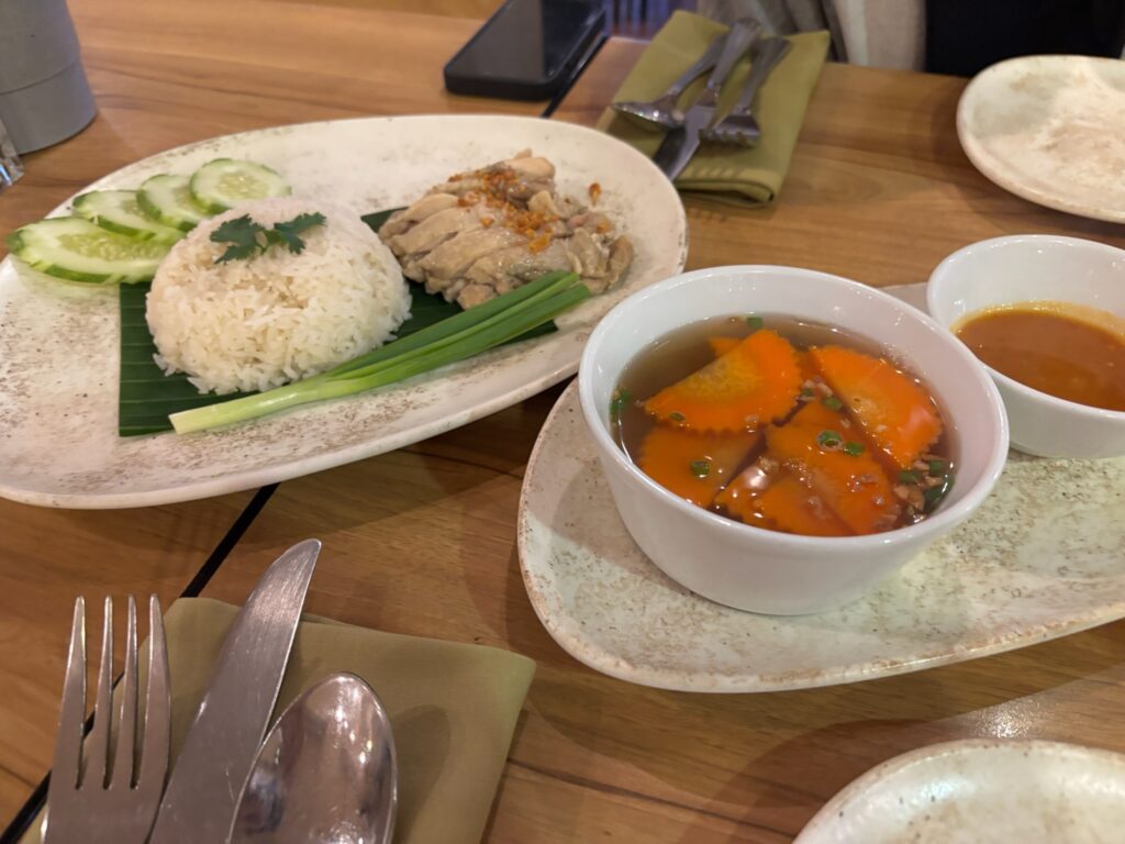 旦那はカオマンガイとココナッツジュースを食べていました🥥