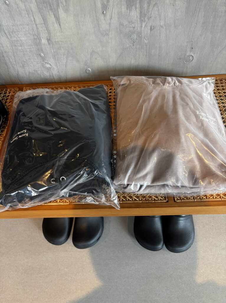 サウナを予約すると、客室にサウナ用のスウェットとサンダルを用意してくれます。