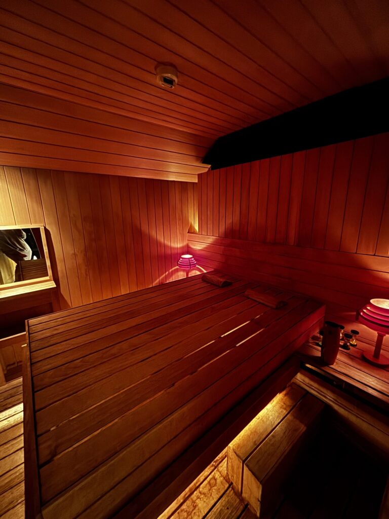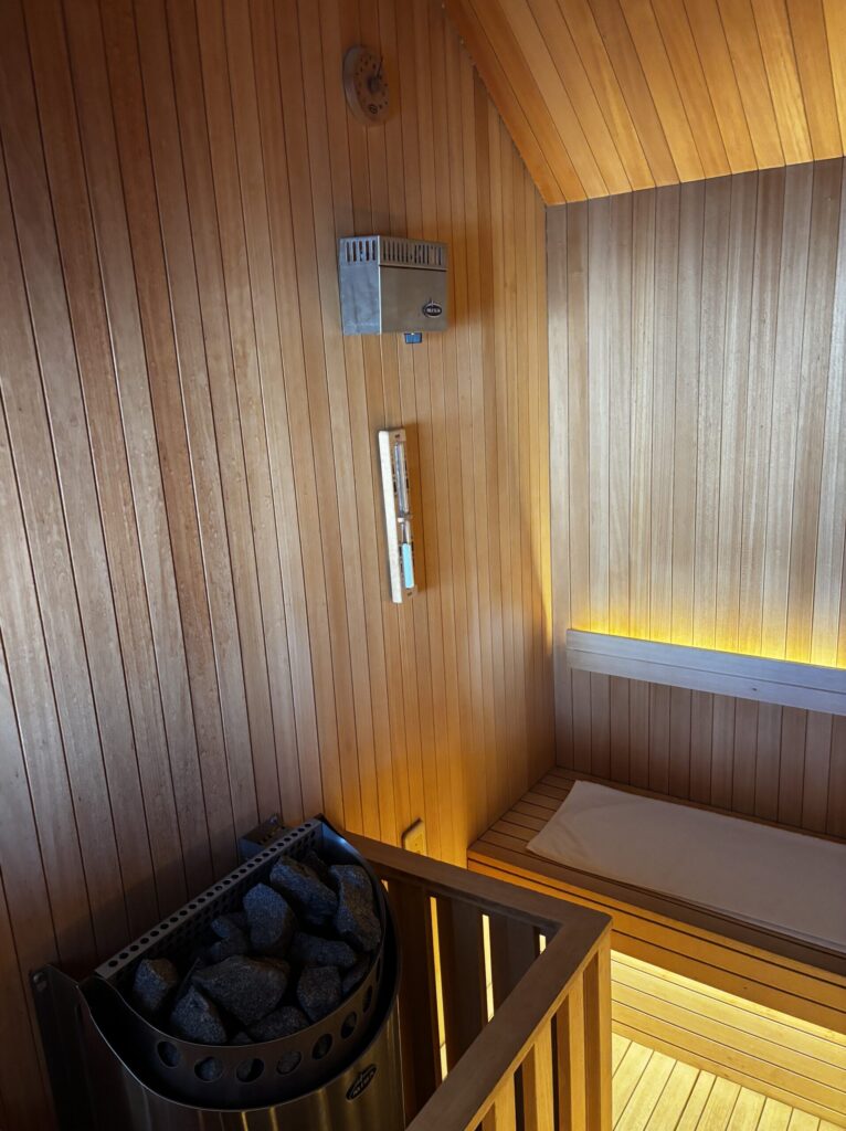 私たちは夕食後にベッドルームサウナ、朝食前にフィンランドサウナに行きました。