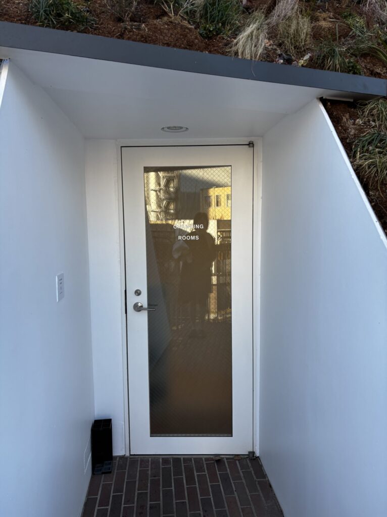 水風呂や外気浴スペースはなく、シャワールームと内気浴できるベンチがあります。