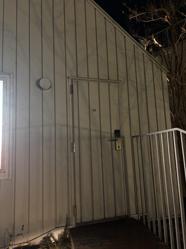この部屋はフロントとは別の建物にあるので、移動の際は1度外に出る必要があります。