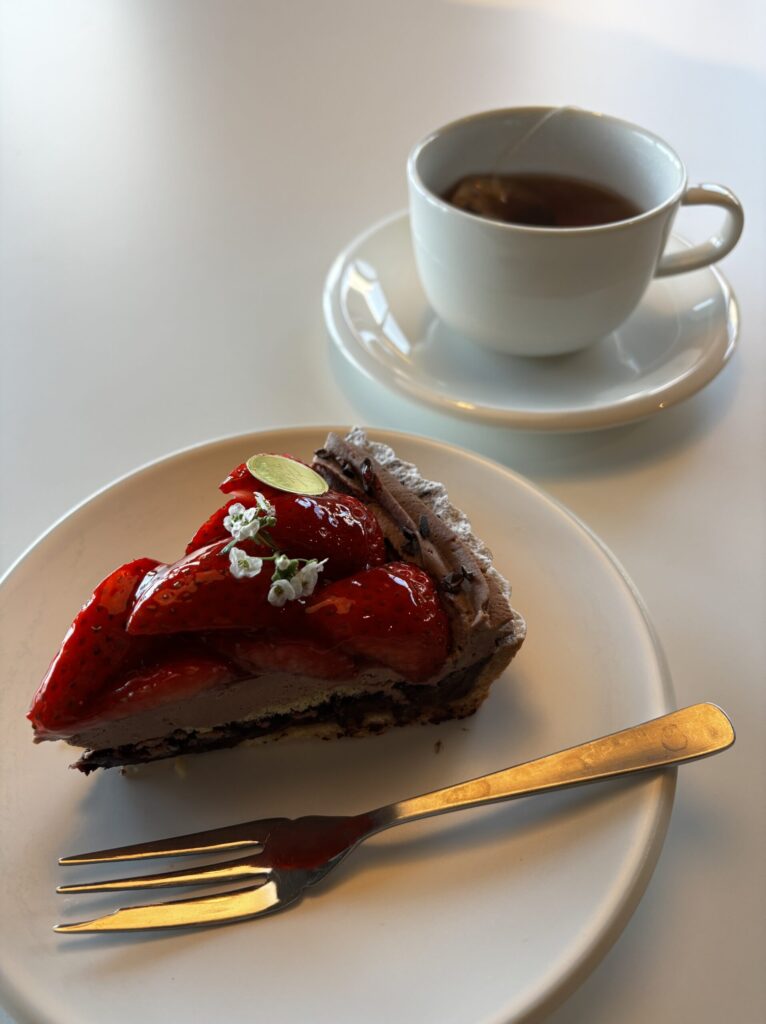 部屋では採れたて苺のチョコタルトをいただきました🍓