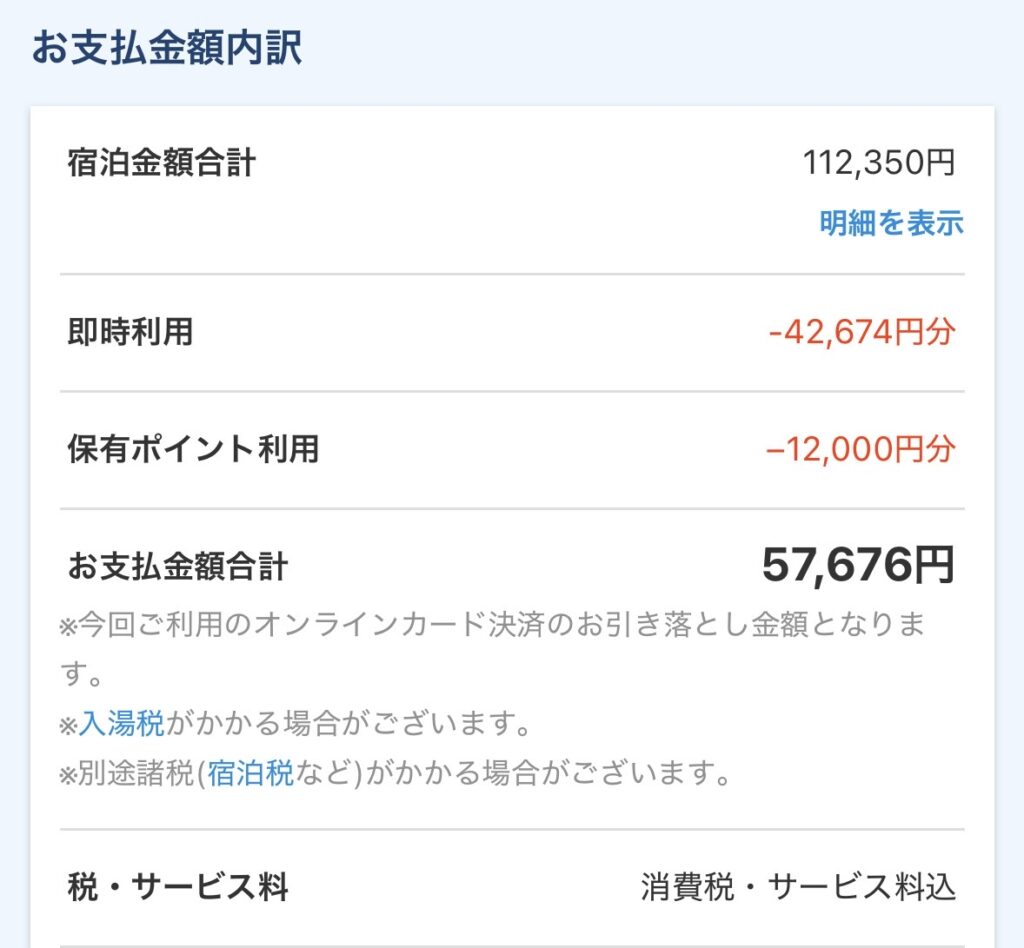 今回もポイントやキャンペーンを活用して、夕朝食付き11万以上のプランを5万円台で予約することができました🎉